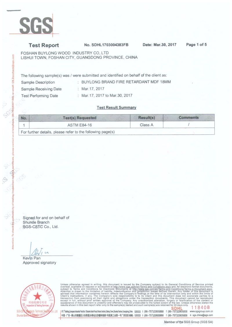 美標(biāo) ASTM E84 CLASS A 阻燃密度板